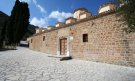 The temple was built in 1811, in accordance with the proclamation of the Turkish commander, to be erected in at most 40 days. Built at great effort by the villagers, the Byzantine-style temple was completed in 39 days. It has 17 domes, one for each of the Apostles, four for the great Evangelists, and the central dome of the Pantokrator (Almighty). The roof rests on 36 pillars of the Byzantine order, and the entire temple was constructed from the wood of a single cypress. In this temple are carvings depicting scenes from the Old Testament, as well as the scene of the felling of the cypress.